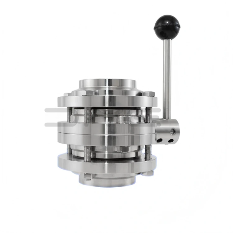 सेनेटरी 3-पीस बटरफ्लाई वाल्व में एक क्लासिक स्प्लिट थ्री-पीस संरचना होती है, जिसमें एक केंद्रीय वाल्व बॉडी, दोनों तरफ दो कनेक्टिंग फ्लैंज या क्लैंप और आंतरिक वाल्व डिस्क, स्टेम और सील शामिल होते हैं। एकीकृत बटरफ्लाई वाल्वों की तुलना में, इसका सबसे बड़ा लाभ पूरी तरह से अलग होना है। रखरखाव और सफाई के लिए पूरी पाइपलाइन को अलग करने की आवश्यकता नहीं होती है; बस दोनों सिरों पर क्लैंप या बोल्ट को ढीला करने से पूरी तरह से सफाई, कीटाणुशोधन और कमजोर हिस्सों को बदलने की अनुमति मिलती है, जिससे डाउनटाइम और रखरखाव लागत में काफी कमी आती है।