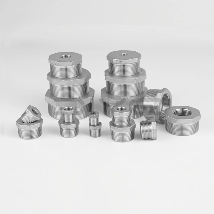 स्टेनलेस स्टील हेक्स बुशिंग्स उच्च गुणवत्ता वाले SS304 (CF8) और SS316 (CF8M) स्टेनलेस स्टील से बने होते हैं, जिनमें उत्कृष्ट संक्षारण प्रतिरोध, जंग की रोकथाम और स्केल प्रतिरोध होता है। वे एसिड, क्षार और विभिन्न रसायनों से जंग का विरोध करते हैं, कठोर कामकाजी परिस्थितियों में सामग्री की क्षति और प्रदर्शन में गिरावट को रोकते हैं, उत्पाद के जीवनकाल को बढ़ाते हैं, और प्रतिस्थापन और रखरखाव लागत को कम करते हैं।